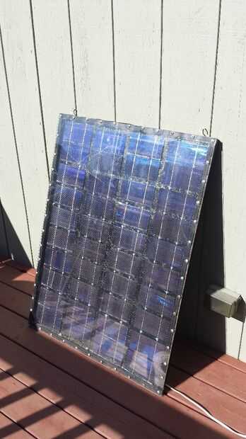 Se trata de un panel solar bricolaje (18 voltios +-) de 12 voltios que usted también lo puede hacer en casa. Su nomenclatura es inferior y casi todos los suministros se pueden comprar en Lowes a excepción de las células solares y el alambre de tabulación.