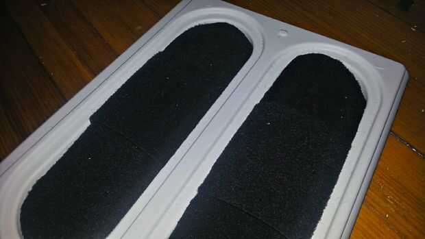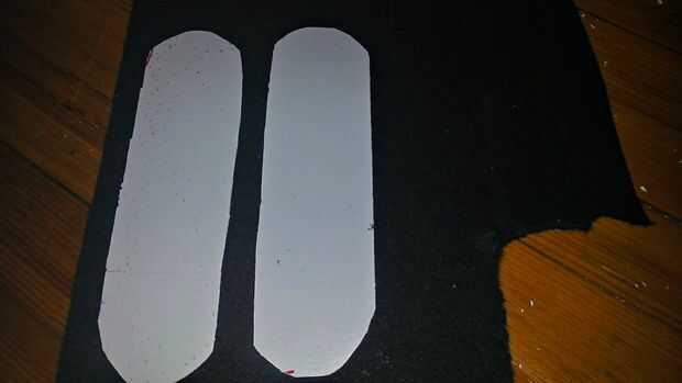 Use spray adhesivo en las piezas plásticas y pegar en la alfombra. Una vez seco, recortar la parte sobrante.