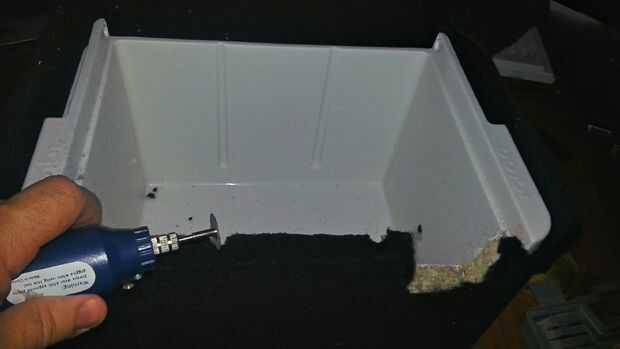 Coloque la tapa también, asegúrese de que se cierra completamente. Una vez que estés feliz, retire la tapa otra vez. y apartar. Probablemente usted tendrá que limpiar el interior de la nevera. Su probablemente llena de pelusa y pedacitos de tela.