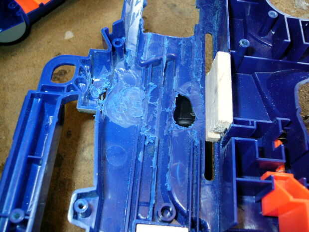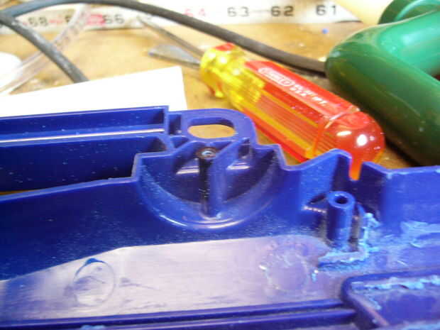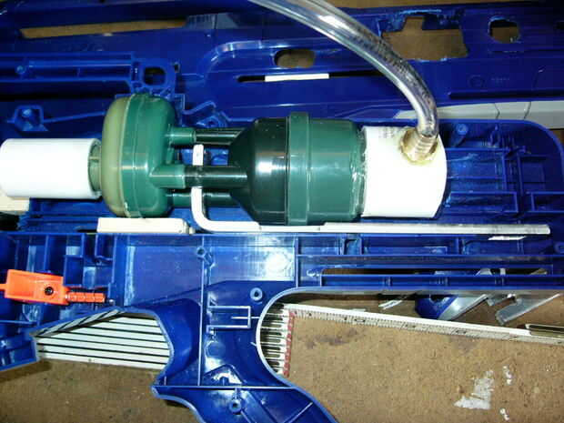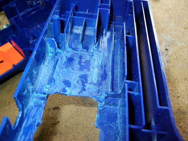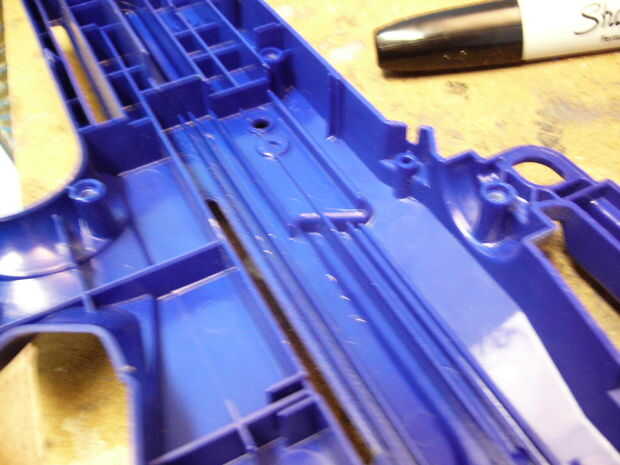 Una cosa a destacar es que sólo debe cortar el orificio para la manguera dejar el arma después de cada otro paso. Esta debe ser una de las últimas cosas, así que si ves en las fotos, ignora lo. ASEGÚRESE DE VACÍO HASTA LOS PEQUEÑOS PEDACITOS DE PLÁSTICO QUE VA A VOLAR POR TODAS PARTES DE LA MOLIENDA. TODAVÍA ME ESTOY ENCONTRANDO PIEZAS EN PLÁSTICO AZUL AL OTRO LADO DE MI CASA. ES un dolor para limpiar más tarde si no eres DILIGENTE sobre periódicamente limpieza arriba