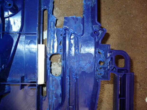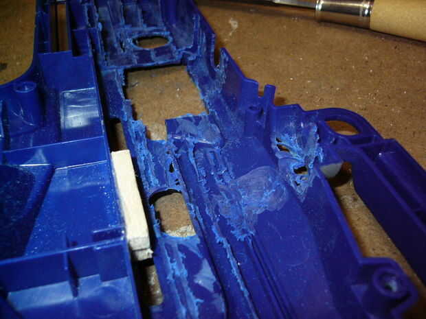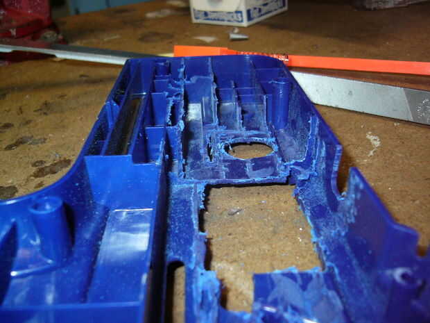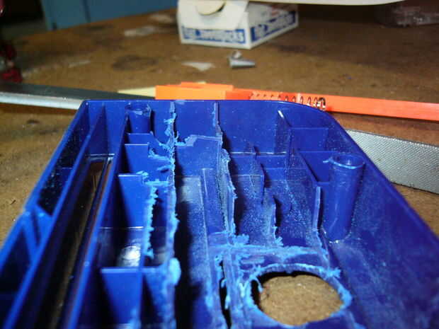 Salir su dremel, coloque la muela y poner en las gafas. Sí, usted necesita gafas. Con el fin de no masticar lejos todo el lado de la longshot, usted necesitará conseguir en cierre y eso significa vuelo plástico. Buena ventilación siempre es bueno tener esto como la molienda podría calentar el plástico lo suficiente para fundir y producir vapores tóxicos que no son la cosa más saludable para respirar.