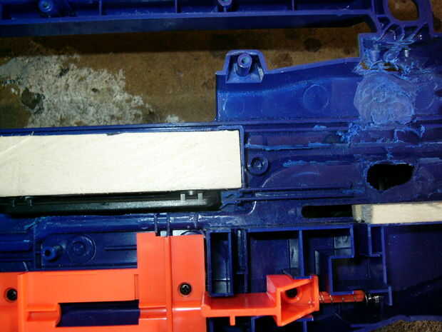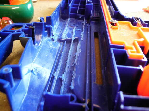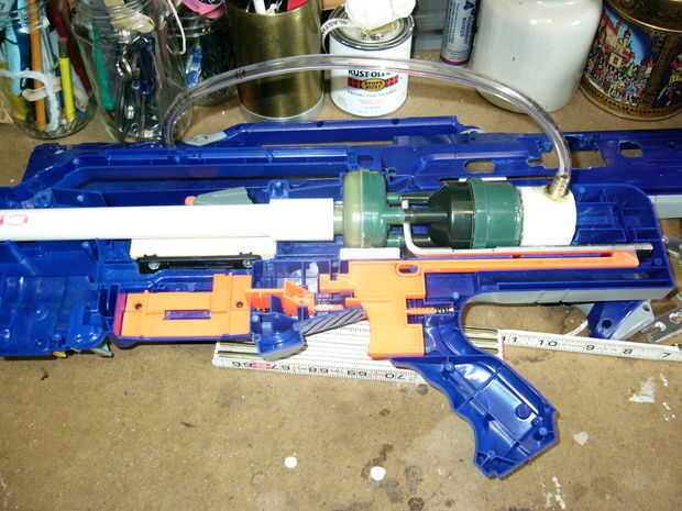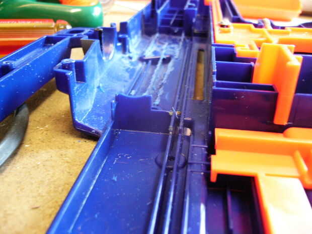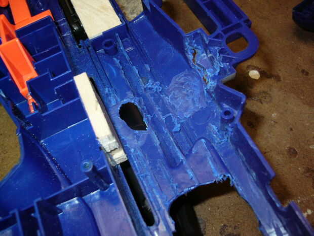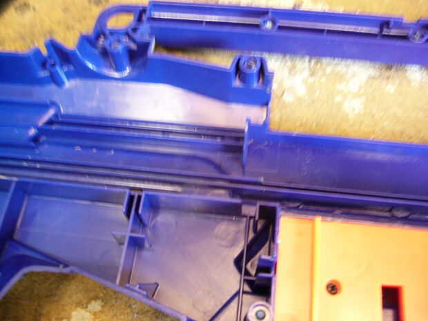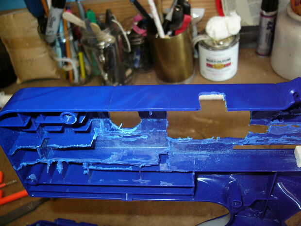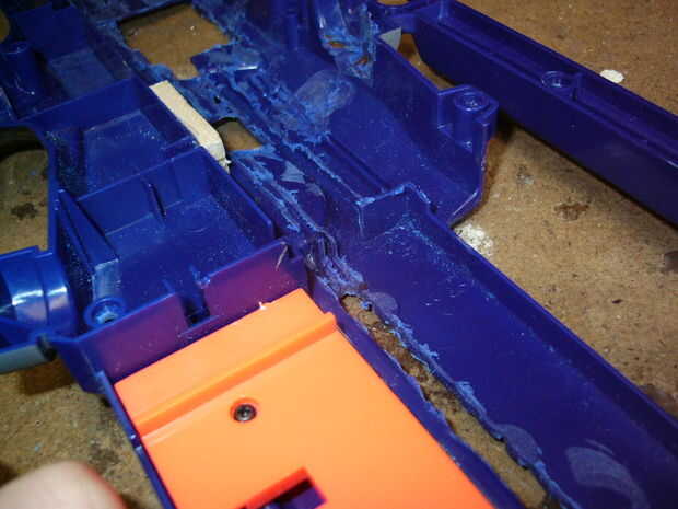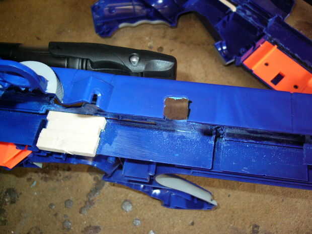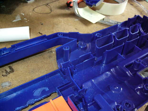 No tengas miedo a moler mucho hacia fuera, ni moler completamente a través de algunas áreas. Para montar el bazooka voluminoso elementos internos en el longshot mucho tendrá que eliminarse. Botín en las fotos para darse una idea de cuanto saque, pero asegúrese de que sus propias piezas encajarán. Aire en el lado de un área dos veces después de haber probado una vez para guardar cierta solidez estructural de la pistola de molienda.