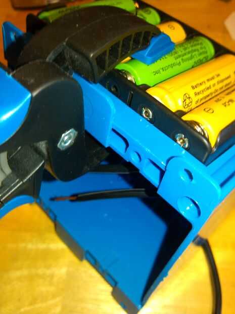 Abrí otro golpe en la parte posterior de la caja para conseguir el cable positivo y negativo dentro del soporte de la batería.