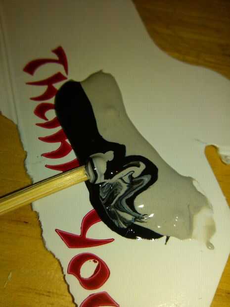 Podrás ver que las fotos de la epoxy antes y después de mezcla Asegúrese de que todos epoxy se mezcla muy bien antes de aplicaron. Algunas fenólicas seca muy rápido otros no opté por usar una abrazadera regulable para mantener todo en su lugar mientras he trabajado en el proyecto. Cuando llegó el momento de poner la placa en el proyecto he decidido usar gomas para sujetar el soporte de la batería en su lugar hasta un secado.