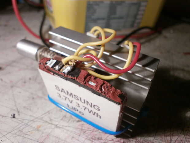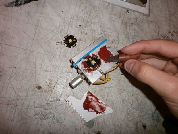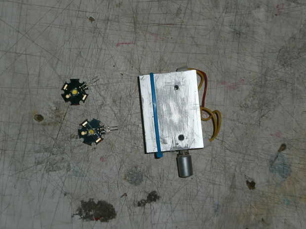 Antes de pegar LEDs disipador térmico tendrá que poner la batería y encienda el disipador de calor
