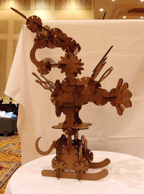 este Instructable es para un kit de construcción press-fit que se compone de dos piezas simples.  Usted puede cortar las piezas en un cortador láser usando cualquier material que se desea (yo usé madera contrachapada) e iniciar la construcción sus pr