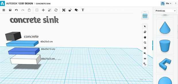 123D fregadero de concreto (1 / 7 paso)