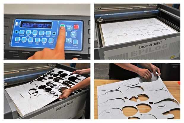 Poner el pedazo de cartulina en la impresora láser. Asegúrese de que esté abajo de plano! Cierre la tapa y oprima el botón "enter" cuando esté listo. Dejarlo funcionando. Nuestro tomó unos 15 minutos. Cuando esté hecho, abra la tapa y sacar las piezas.