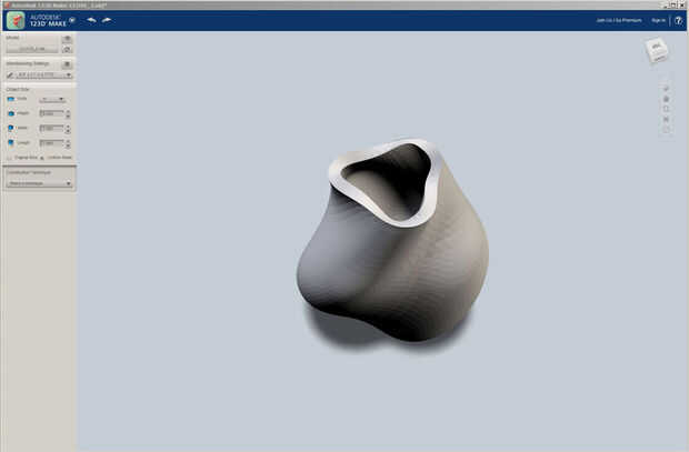 Abrir Make 123D e importar el archivo. Una de las primeras cosas que puedes hacer es elegir una técnica de construcción. Básicamente estaba tratando de recrear una radial cortar técnica que desarrollé en saltamontes, por lo que es lo que fui con. Dependiendo del modelo que tenga que mover y ajustar los ejes de corte. Hacen esto haciendo clic en' Slice' y ajustar manualmente estas opciones. Si sea de su agrado entonces siga adelante y haga clic en distribución de rebanada.