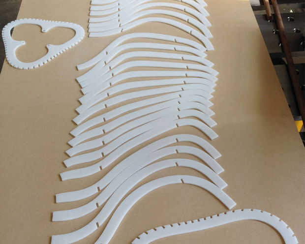 Desde que corté mis piezas de acrílico blanco, tenía papel/plástico de la película en ambos lados - deje en durante el corte - mantiene las piezas del negro y ahumado. Es un poco de dolor para quitar - sobre todo de ambos lados de 62 piezas delgadas! Tenga cuidado al retirar la película protectora ya que es fácil romper una pieza frágil! Como paso opcional, ahora el tiempo para terminar o tratar las piezas en cualquier forma que desee antes de la Asamblea como luego sería muy difícil. No estaba demasiado interesado en el brillo del acrílico, usé una lijadora excentrica con una almohadilla de 150 grano a ambos lados un agradable acabado mate.