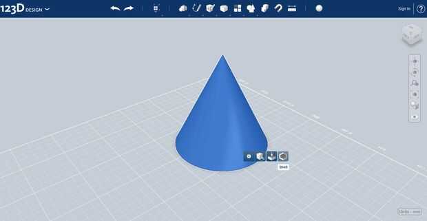 Luego en el cono dos veces para mostrar un icono de configuración, haga clic en el icono de shell. Elegir una altura y será cortar la parte superior del cono (utilicé 8 como mi estatura).