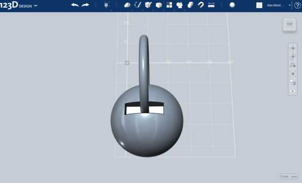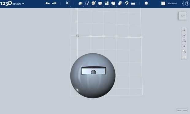 Para hacer el agujero para poner la carga de cable a través de usted primero debe hacer un toro con un radio mayor de 50 y un radio menor de 8. Colóquela verticalmente de pie en el borde de la esfera. Ahora esta es la parte difícil, pasar el toro a través de la esfera hasta llegar a la parte hundida.