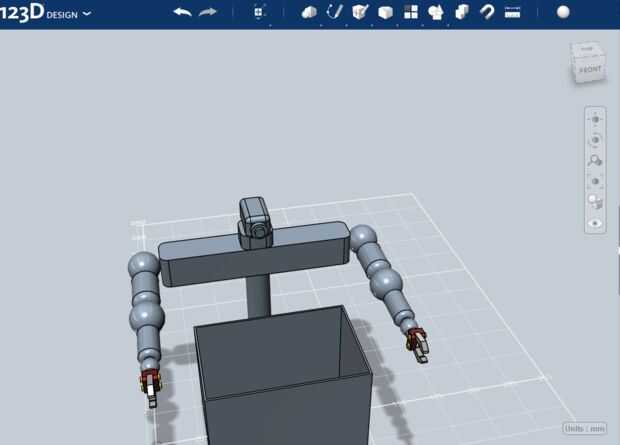 Para hacer la cesta de lavadero tienes que crear un cuadrado de longitud 60, ancho 90 y 60 de altura. Usted puede hacer la cesta de lavadero frente al robot. Luego ahuecar la parte superior de la Plaza y filete todos los bordes con un radio de 3. Finalmente agregue el color y materiales para hacer el robot de servicio de lavandería personal a usted!