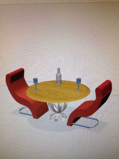 Proyecto de diseño de This123D es un proyecto que en los elementos de diseño y creatividad pura para hacer una mesa con sillas, vasos y una botella.