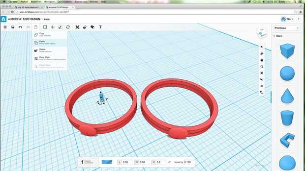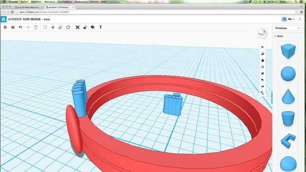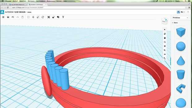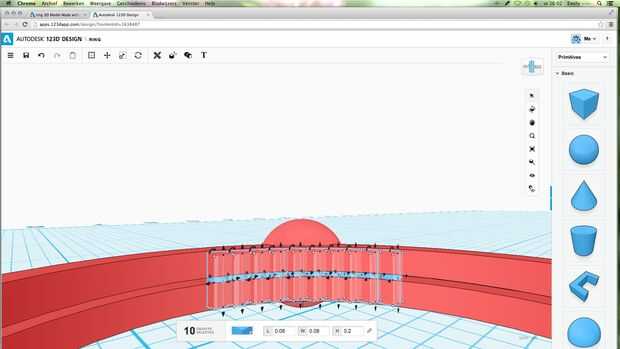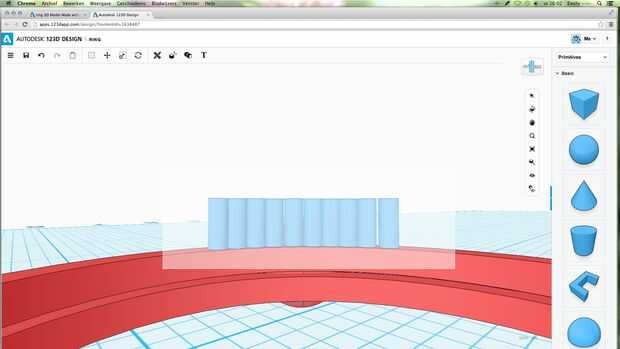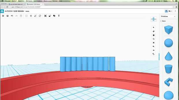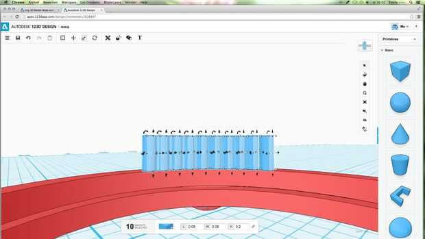 A continuación, elija la opción copiar. Luego, pegar el cilindro nueve veces, para acabar con diez cilindros. Coloque el anillo tal como se muestra en las fotos. Cuando los diez de los cilindros están en posición, seleccionar los diez de ellos. Mover hacia abajo hasta que no sobresalen más.
