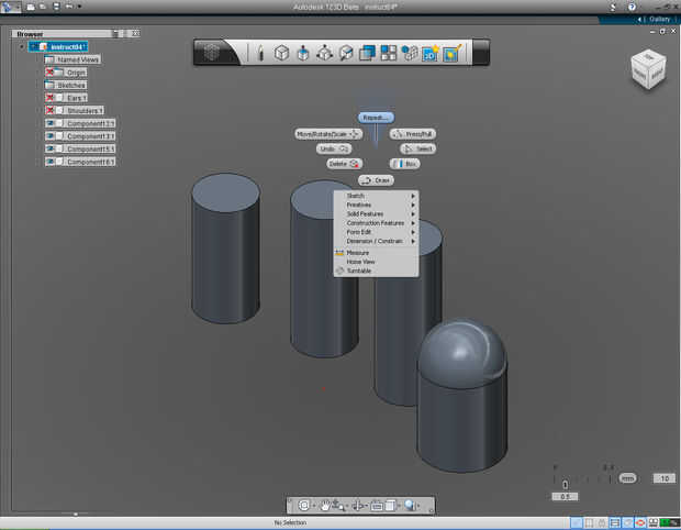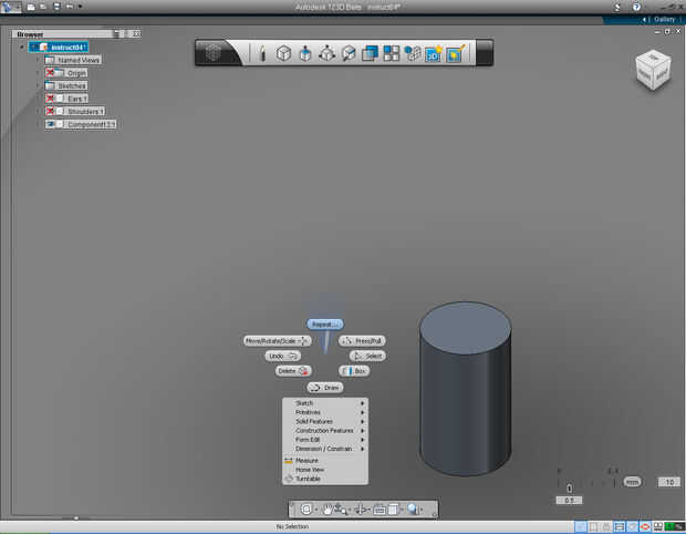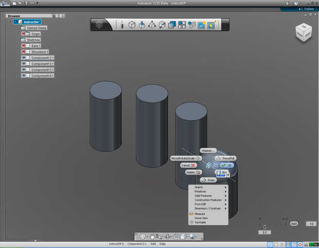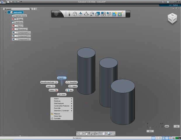 7. Haga clic derecho del ratón para que aparezca el menú de la marca, luego seleccione "Repetir..." píldora para dibujar el cilindro nuevo, el primer dedo.