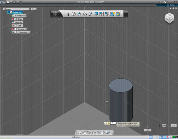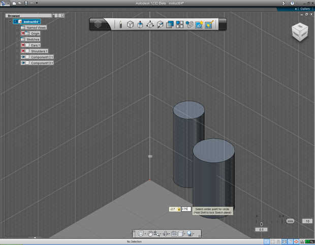 12. establecer el punto central del cilindro a -2,7 y 2.75