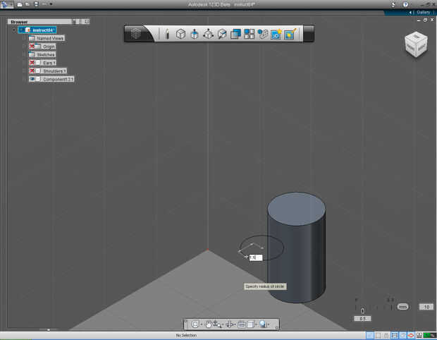8. establecer el punto central del cilindro 2.5 y 2.75