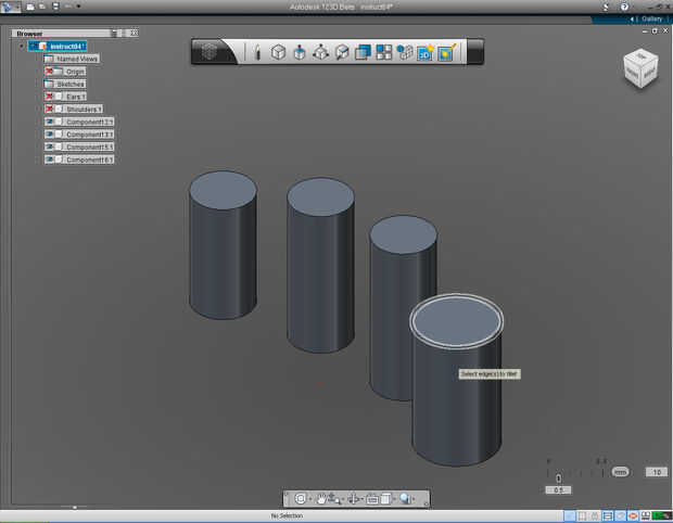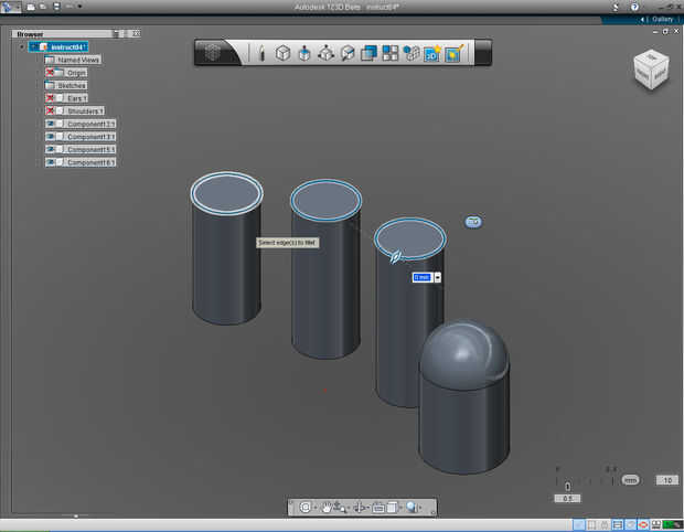 25. Seleccione el borde superior de los dedos primero, segundo y tercero. A continuación especifique el radio del acuerdo a 1.5 mm, o bien arrastrando la flecha bidireccional, o el valor usando el teclado de entrada.