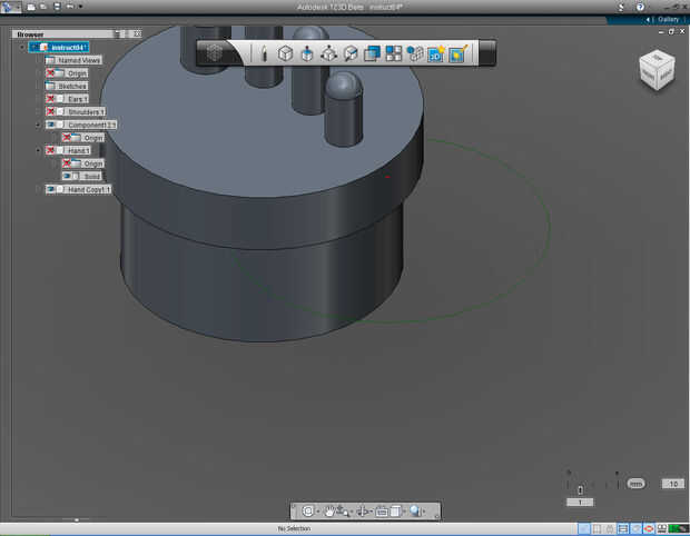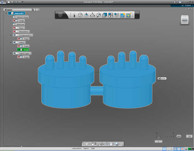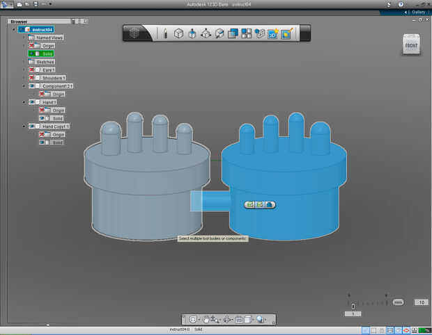 14. ahora tenemos dos manos y un círculo sólido extrusionado "reunidos".