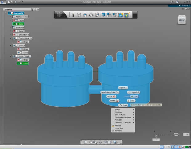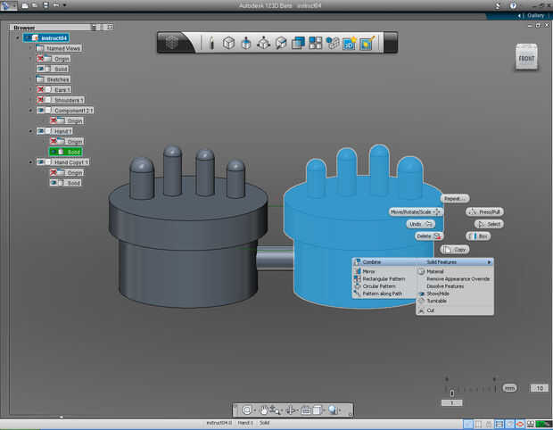 1. copia el modelo de la mano izquierda sólida "Nuevo componente", función en la "función de navegador" (pasé mi mano derecha a la "mano copia 1",