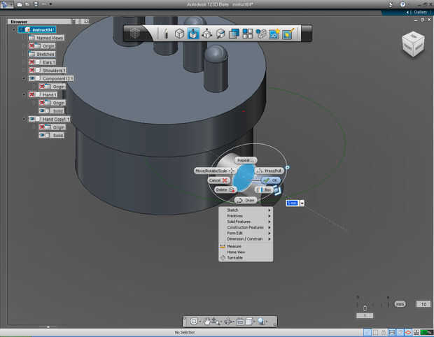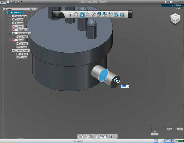 12. Seleccione el cilindro y la mano izquierda, para combinar a mano derecha de modelo sólido.