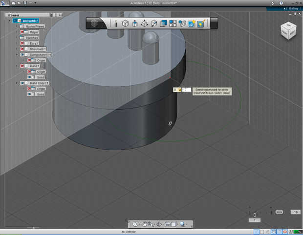 3. comenzar a dibujar el "círculo" en el "plano de derecho", con la píldora de "Círculo" en el menú de "Sketch" de la marca.