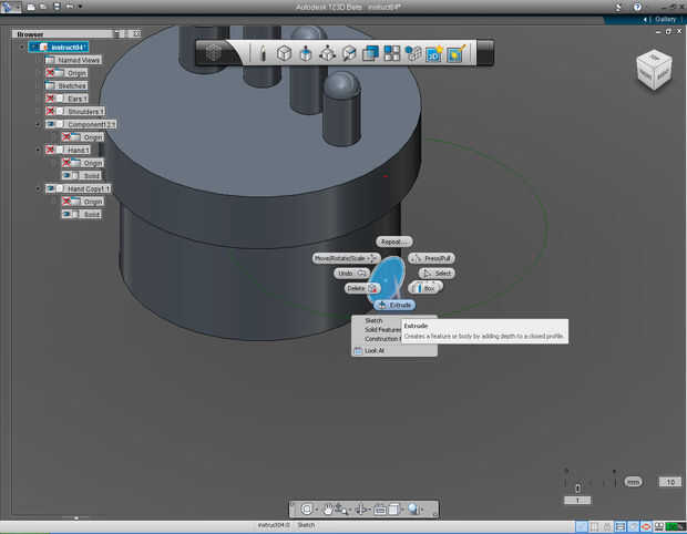 6. Seleccione el círculo que hemos dibujado. Haga clic derecho en el círculo a brign marca menú, luego seleccione "Extrude" píldora en el menú.