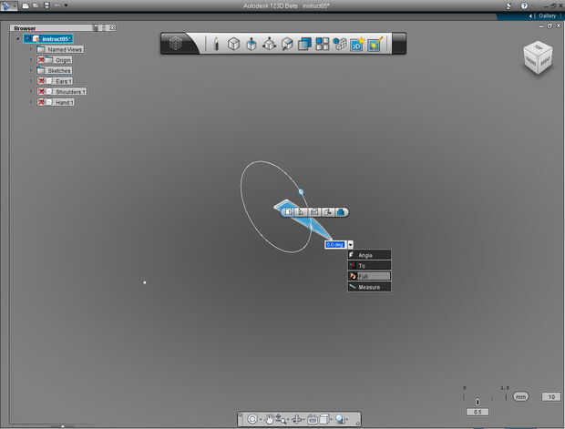 14. Especifique la revolución "Completa" o tipo de 360 en el cuadro de entrada. Luego, haga clic con el botón derecho del ratón para abrir menú de marcado y seleccionar "OK" para cometer el comando.