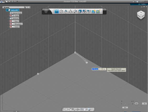 Dibujar todas las líneas con la función "Dibujar" en el cubo de "Bosquejo", luego "Giran", al igual que lo que hicimos con el modelo del oído. O podríamos utilizar los mismos métodos que utilizamos en el paso anterior (paso 7), cuando creamos el modelo de las manos, utilizando la función de "Cilindro" en el menú de la marca "Crear" o cubo, o usted podría utilizar diferentes comandos para crear el modelo, las posibilidades son infinitas!