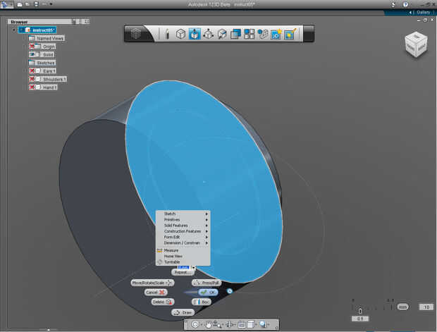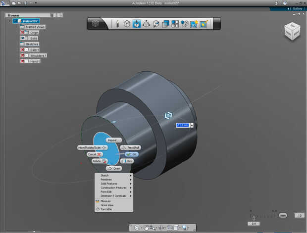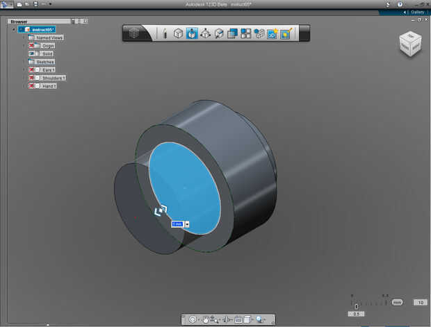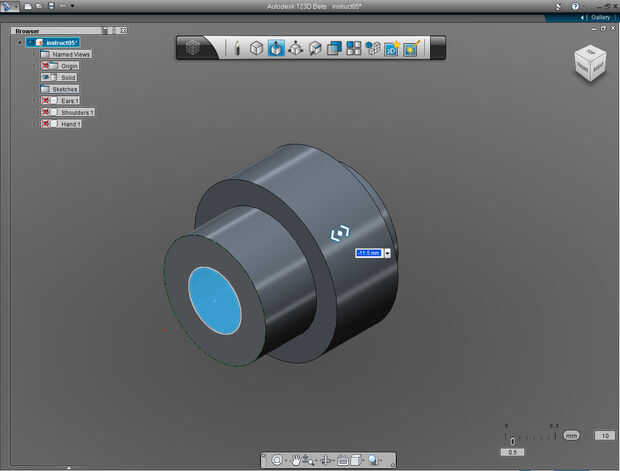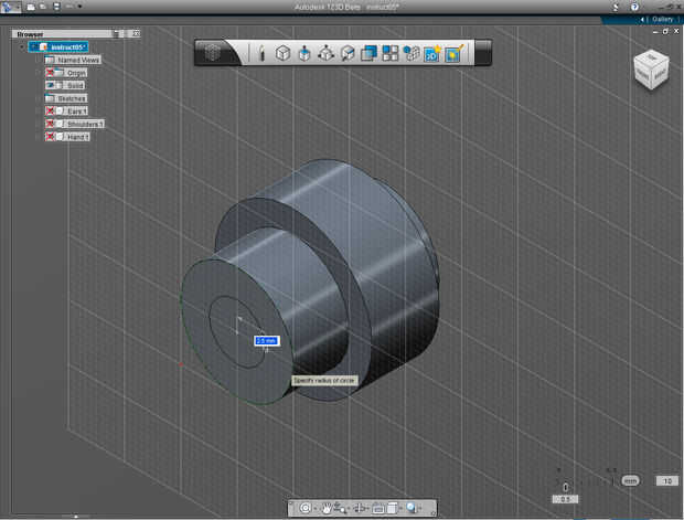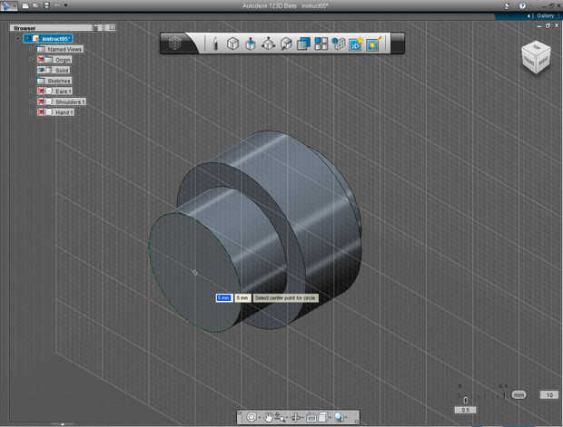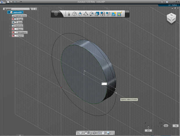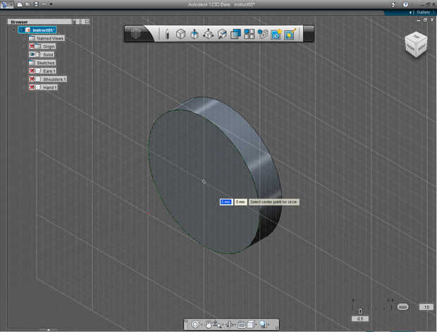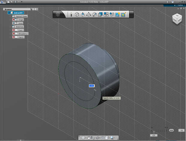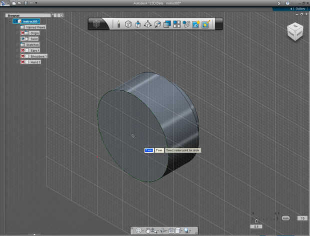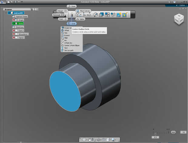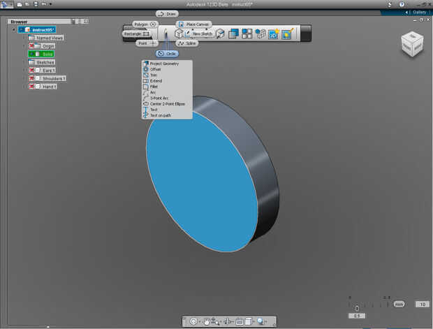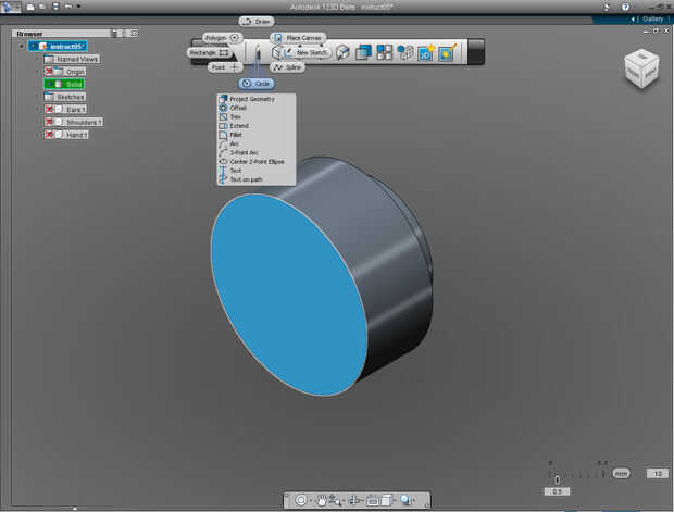 6. crear otro círculo de extrusión, seleccionar píldora "Círculo" menú "Dibujo" de la marca.