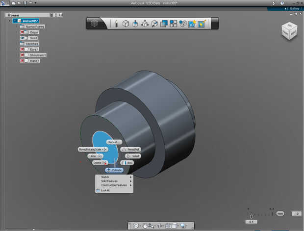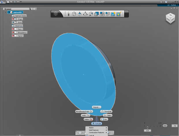 9. abrir el menú marca por derecha haga clic en el botón del ratón. Y seleccione "Extrude".
