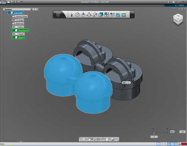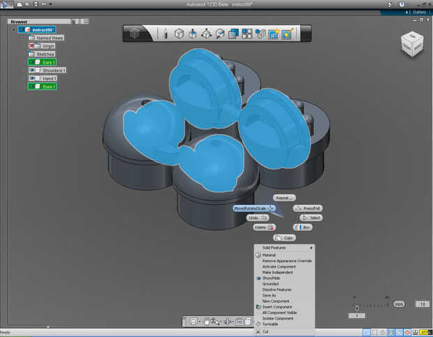 12. Seleccione "Manos" y "Orejas" modelos sólidos otra vez.