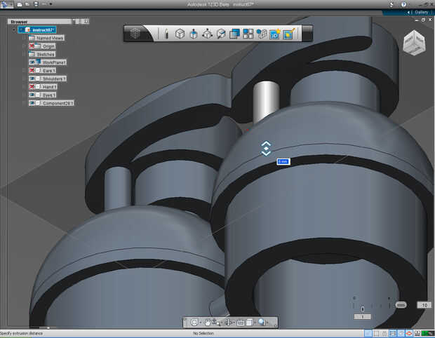 14. arrastra la flecha bidireccional para especificar la altura del cilindro de 8mm