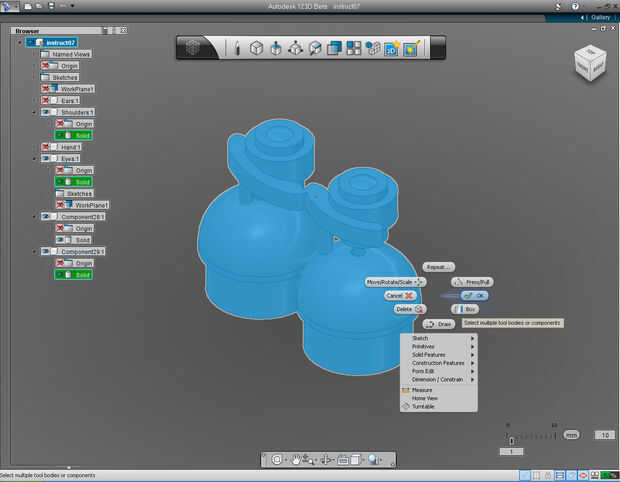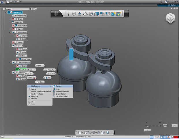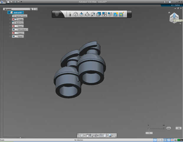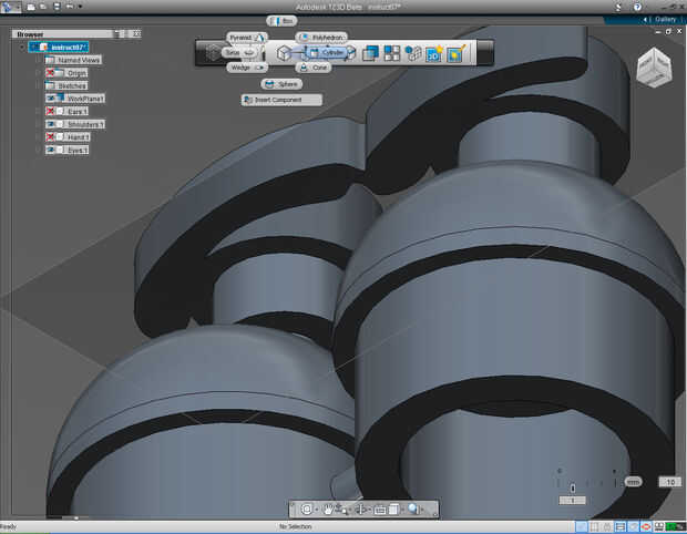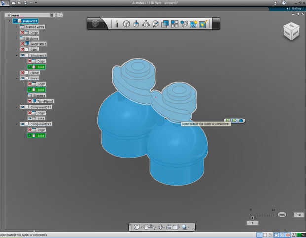 16. Presione la tecla Mayús mientras selecciona todas las separado partes sólidas - los hombros, ojos, cilindro.