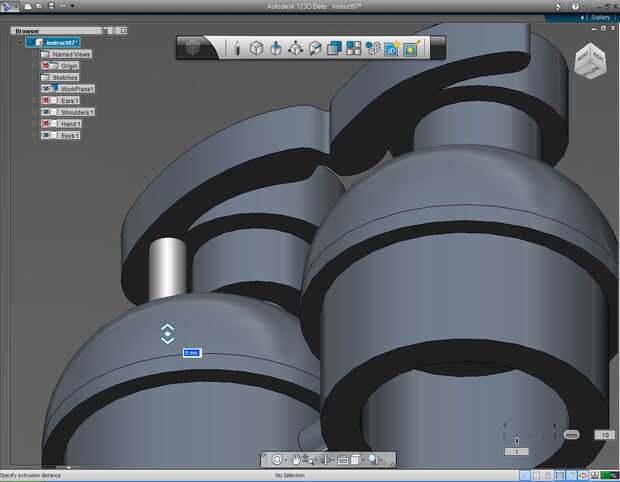 10. arrastra la flecha bidireccional para especificar la altura del cilindro de 8mm