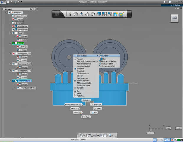 15. Haga clic derecho para abrir menú de marcado, seleccione "Característica sólida" -> "Combinar"