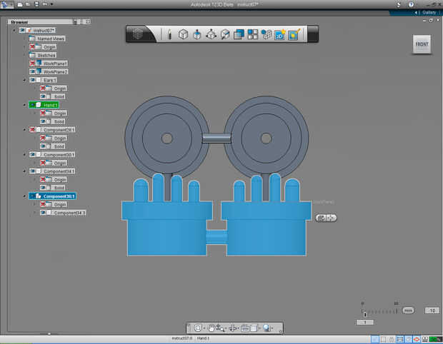 1. ocultar "Workplane1" y previamente se unió a modelo sólido (hombros y ojos), dejar sólo las manos y los oídos en la pantalla.