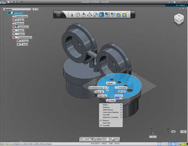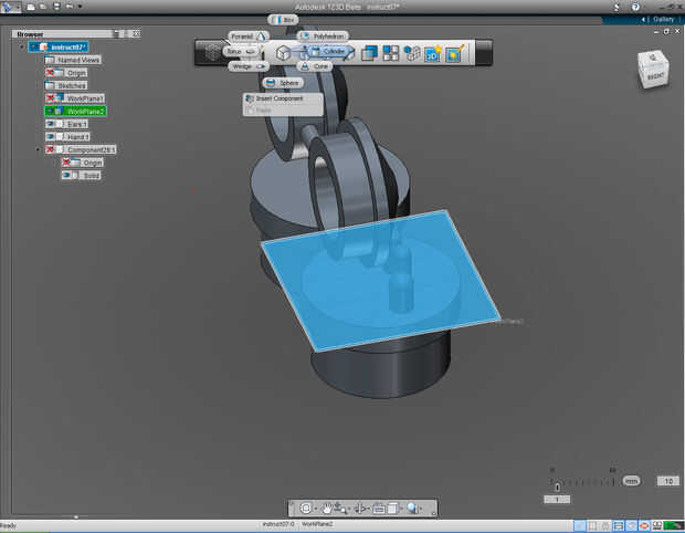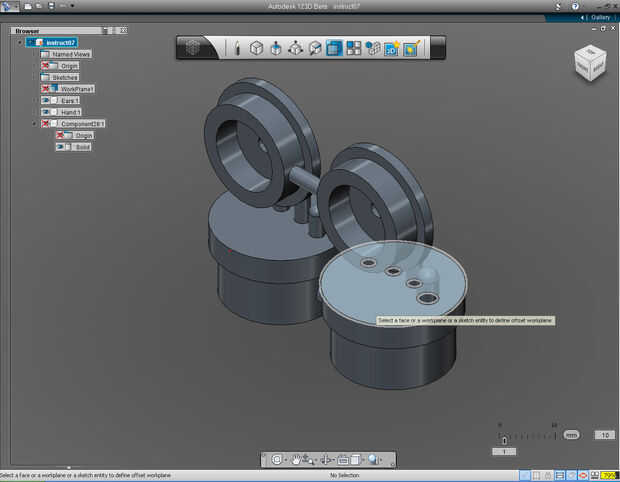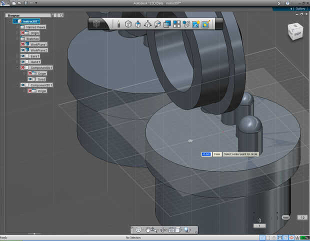 6. Ajuste la pantalla para que podamos ver el plano de trabajo más cercana, utilizando "Vista cubo" o "Órbita" en la barra de herramientas de "Navegación".