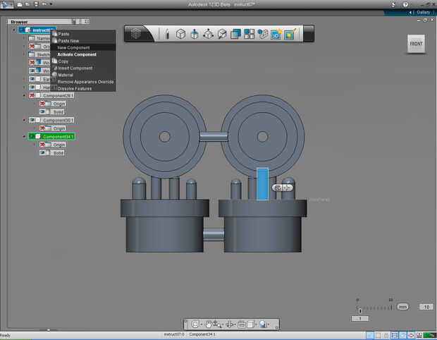 10. Haga clic derecho en el elemento primario en la lista de "Función Browser", seleccione "Nuevo componente". Y también seleccionar el comando "Copiar" en la lista.