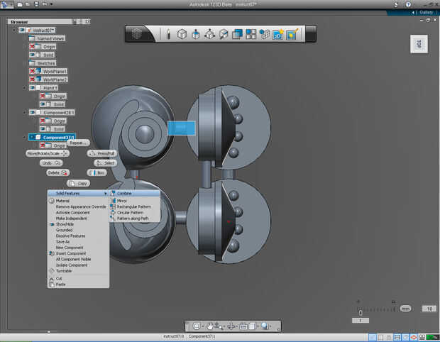 11. Haga clic derecho en el recién creado (círculo extruido) sólido. Continuación, seleccione "Copiar" de la lista.