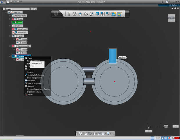 14. Haga clic derecho sobre el componente nuevo recién creado. Seleccione el comando "Pegar" en la lista.