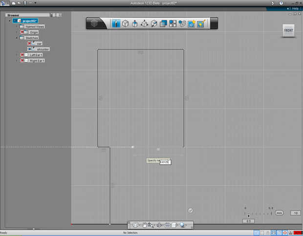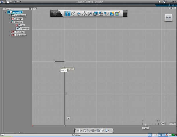10. dibuje una línea perpendicular a la línea anterior por sorteo el punto final a la izquierda y la cantidad de 1,5875 mm utilizando el teclado de entrada.