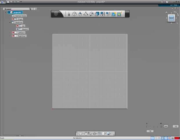 6. el plano frontal aparece con el origen está en la esquina inferior izquierda (punto rojo).