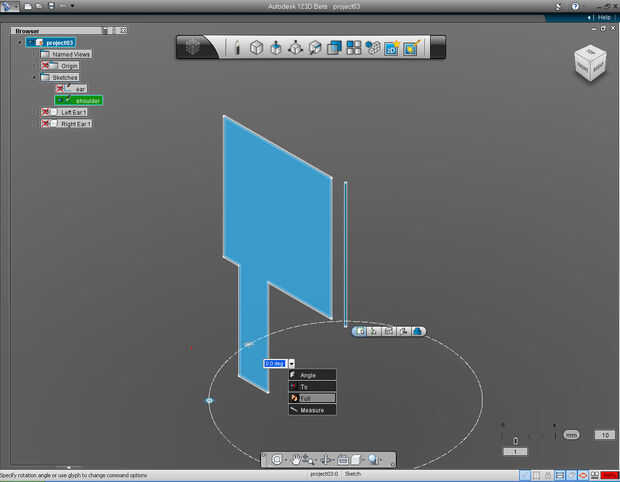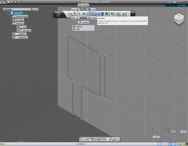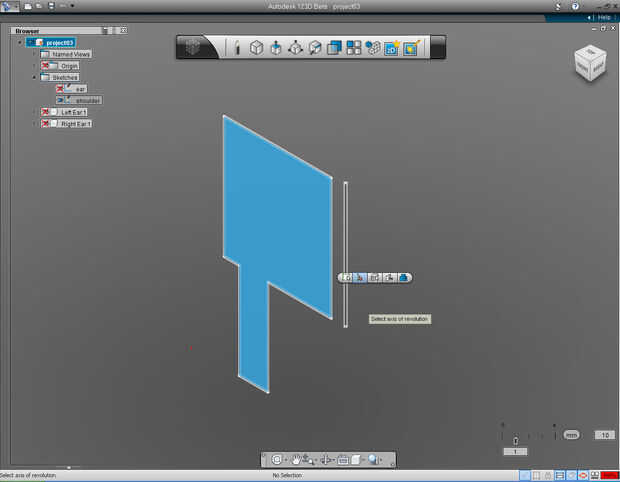 26. Seleccione el perfil al 123D lo pide y seleccione el eje de revolución. (Nota: hicimos este comando antes de crear pasos de oído.)