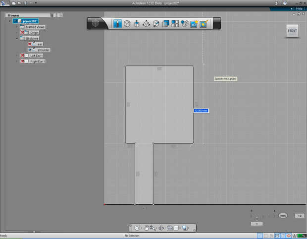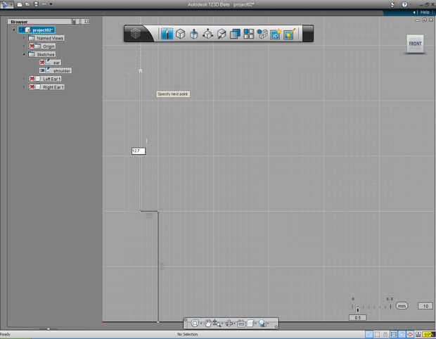 11. Continúe dibujar la línea en dirección hacia arriba, utilizando el teclado para introducir 12,7 de la longitud de línea de entrada.