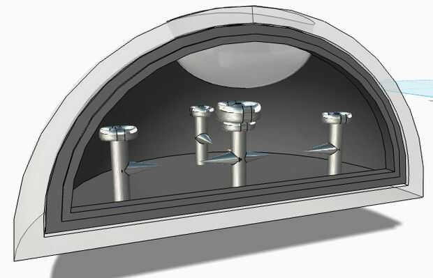 Para este i utiliza una esfera, entonces puso un cuadro más de la mitad de él y usa la herramienta subtract para obtener la media esfera y luego me hizo otra esfera cortada por la mitad luego resta la parte en la parte superior para obtener la abertura por donde los nanobots serán almacenados y usa la herramienta shell para obtener esa ventaja. También puedes ver hay una capa transparente y una capa negra, son dos semiesferas separados.