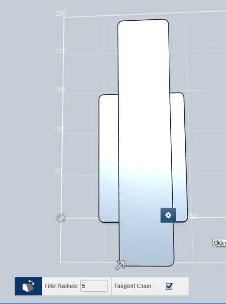 Filete, los bordes verticales del cuadrado inferior por un radio de 5. Luego, realizar un cuadrado de longitud 240, 50 de anchura y altura 20. Lugar este rectángulo en la parte superior las dos columnas como se muestra en el cuadro 4. Filete los bordes de altura los lados verticales del rectángulo superior por un radio de 5. El rectángulo superior se combinan con el resto de la estructura.