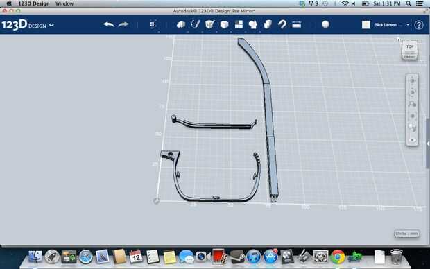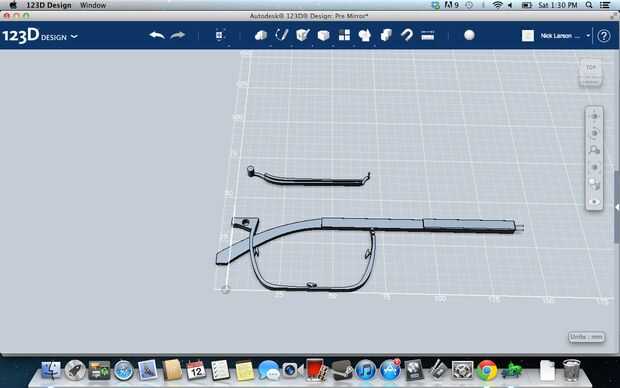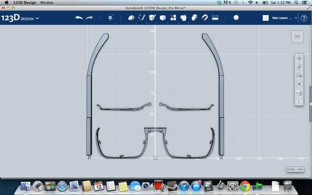 Ahora mira mi ejemplo y asegúrese de que el tuyo es similar. Si piensas que estás bien, seguir adelante y en esa pestaña de "patrón" en la parte superior seleccione "espejo". Ahora selecciona todas las partes y no la línea que dibujó a lo largo del eje Y. Ahora en la herramienta de espejo seleccione la pequeña pestaña que dice "plano de espejo" y ahora seleccione la línea a lo largo del eje Y y pulse «enter». Debe ser un espejo para todas sus piezas ahora y sus marcos deben tener ambos lados. Ahora a borrar la línea del eje Y que hiciste.
