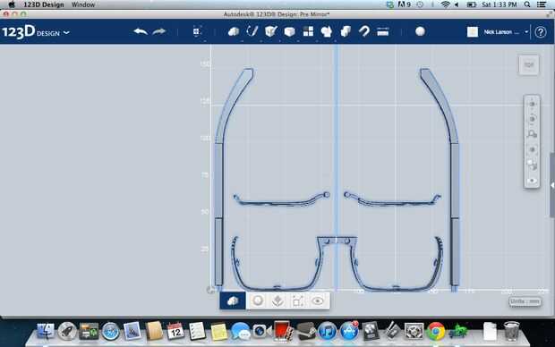 Si usted mantiene el lado izquierdo del armazón, por lo que cumple con el eje Y en cero gran! Dibujar una línea a lo largo del eje Y para que sea suficientemente largo estirar sobre todo de las partes. Si no mueve el marco de las gafas para que el lado izquierdo del bastidor sólo está cumpliendo con el eje Y, de lo contrario los marcos no se convertirá en un objeto y que no sería bueno.